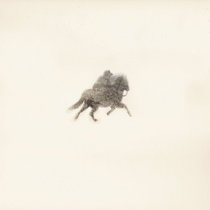 You are standing in front of the entrance to a golden-yellow museum room. Clouds slowly float across the room from left to right, driven by a lazy, undulating breeze. There hangs a frame on the opposite wall. In the frame is a pale blue sky. In the Treeeees